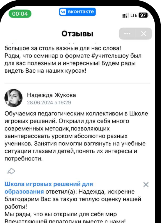 Обучаемся педагогическим коллективом в Школе Игровых Решений. Открыли для себя много современных методик, позволяющих заинтересовать уроком абсолютно разных учеников. Занятия помогли взглянуть на учебные ситуации глазами детей, понять их интересы и потребности.
